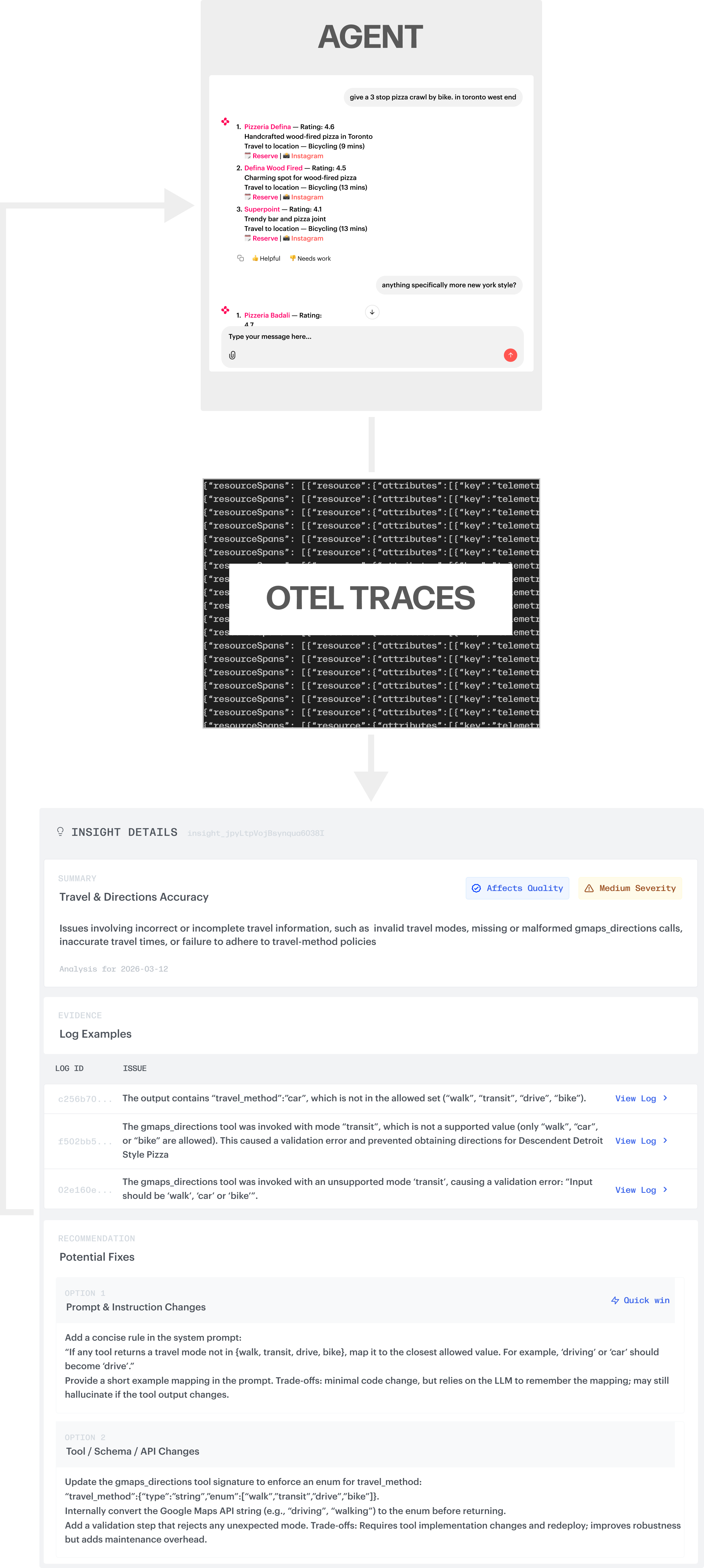 Aggregate statistics on performance metrics lack visibility into behavior – the interplay and correlations between users, context, tools, models, and metrics.