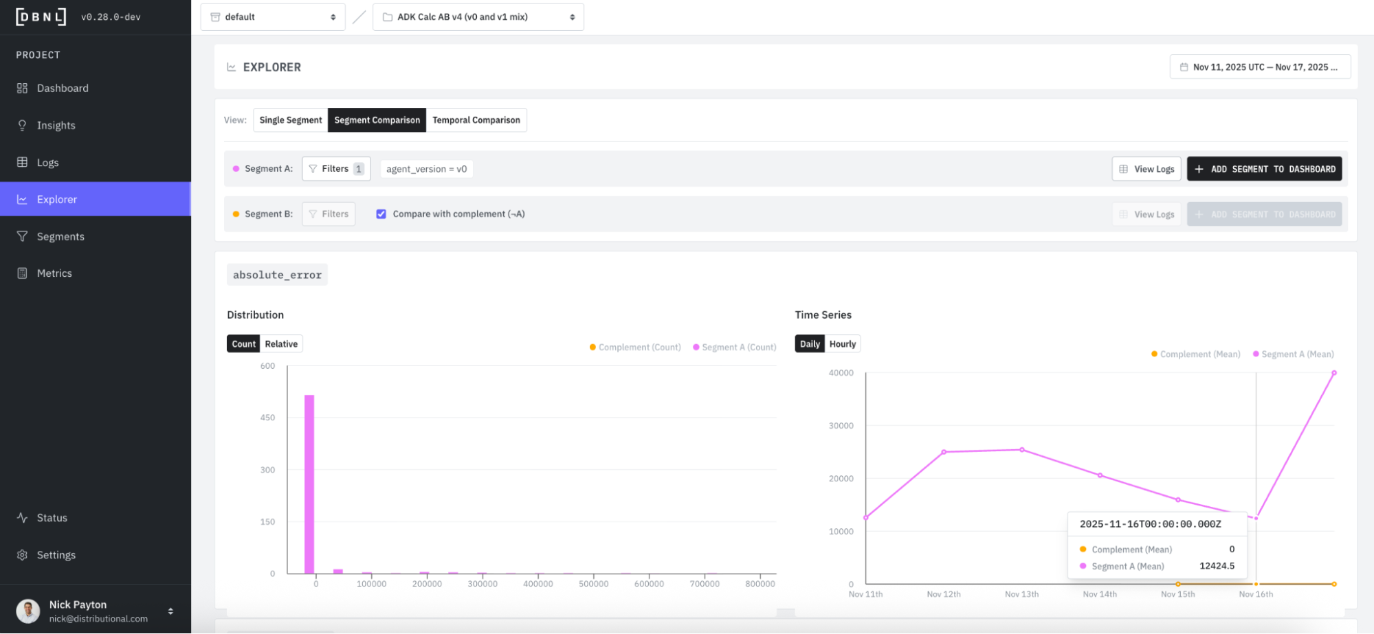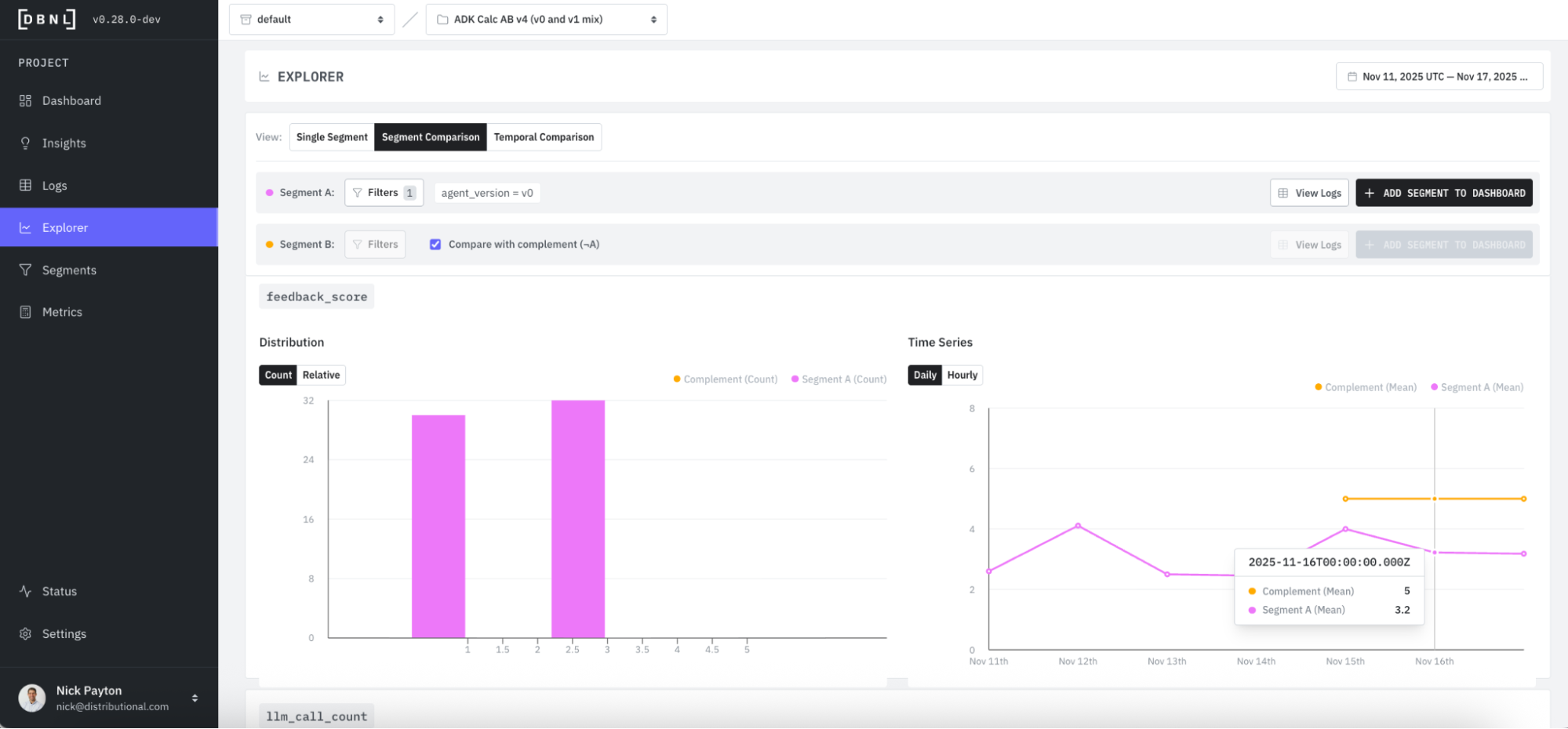 We’ve heard the same story from dozens of AI product teams: it is hard to discover and diagnose issues when your agent is in production, and can be even harder to confirm the fix is working. These stories motivated our approach to adaptive analytics. In this example, we show how you can solve each of these problems with Distributional’s product (DBNL) to have a much more rapid cycle of fixes and improvements for your production AI agents. To jump straight to the example and start using it, navigate here: https://github.com/dbnlAI/examples/tree/main/ab_test_example